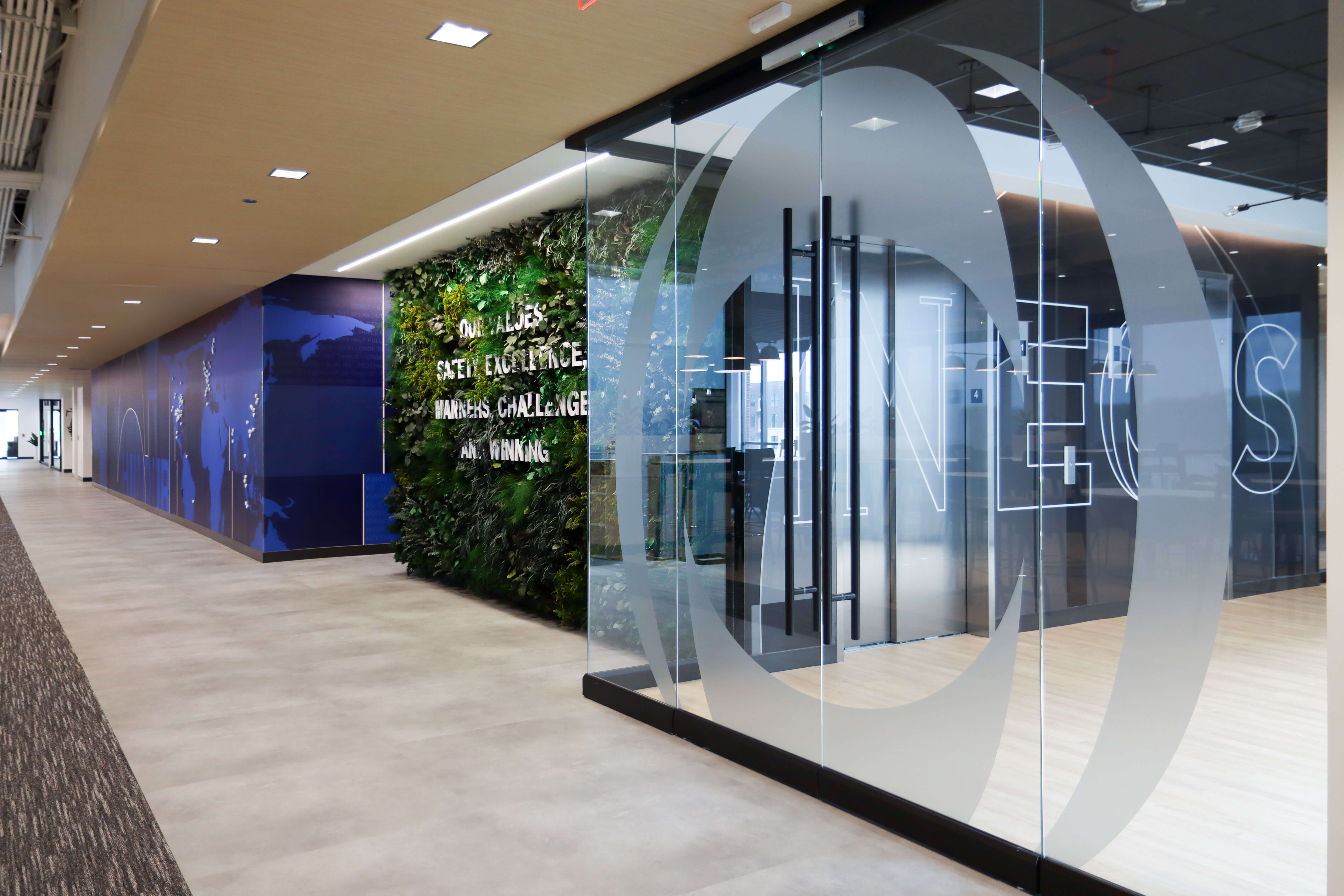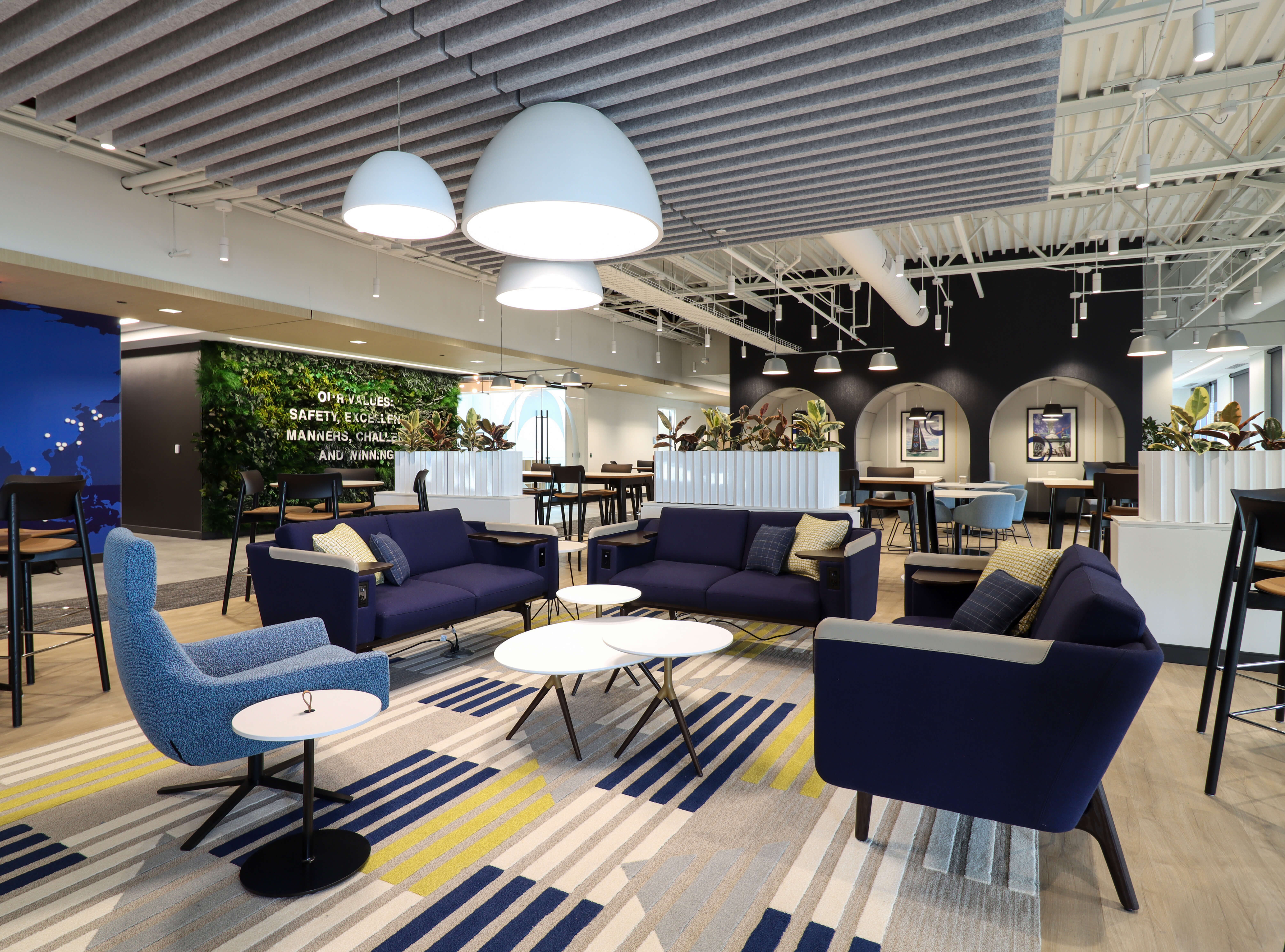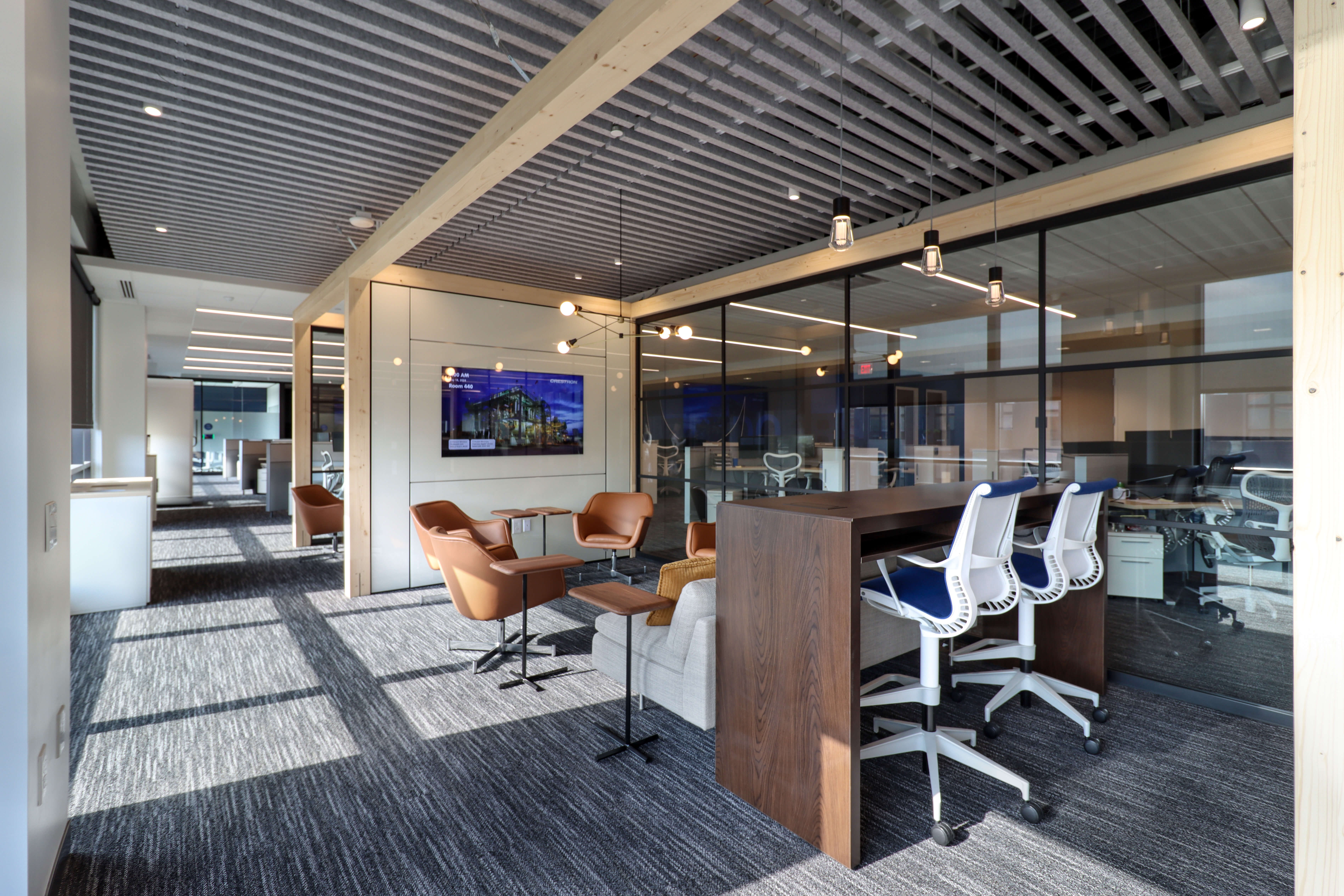 INEOS Enterprises, a global chemical company sought to consolidate several North American business headquarters into one central location in Grandview Heights, Ohio to enable collaboration and operational efficiency. Nationwide Realty Investors (NRI) secured INEOS Enterprises as a tenant on the fourth floor of their Grandview Yard building and hired Lehman Daman to complete the buildout, which features demountable partitions, a Greenmood living wall, café, boardroom with pantry, and a flexible mix of collaborative and private workspaces.