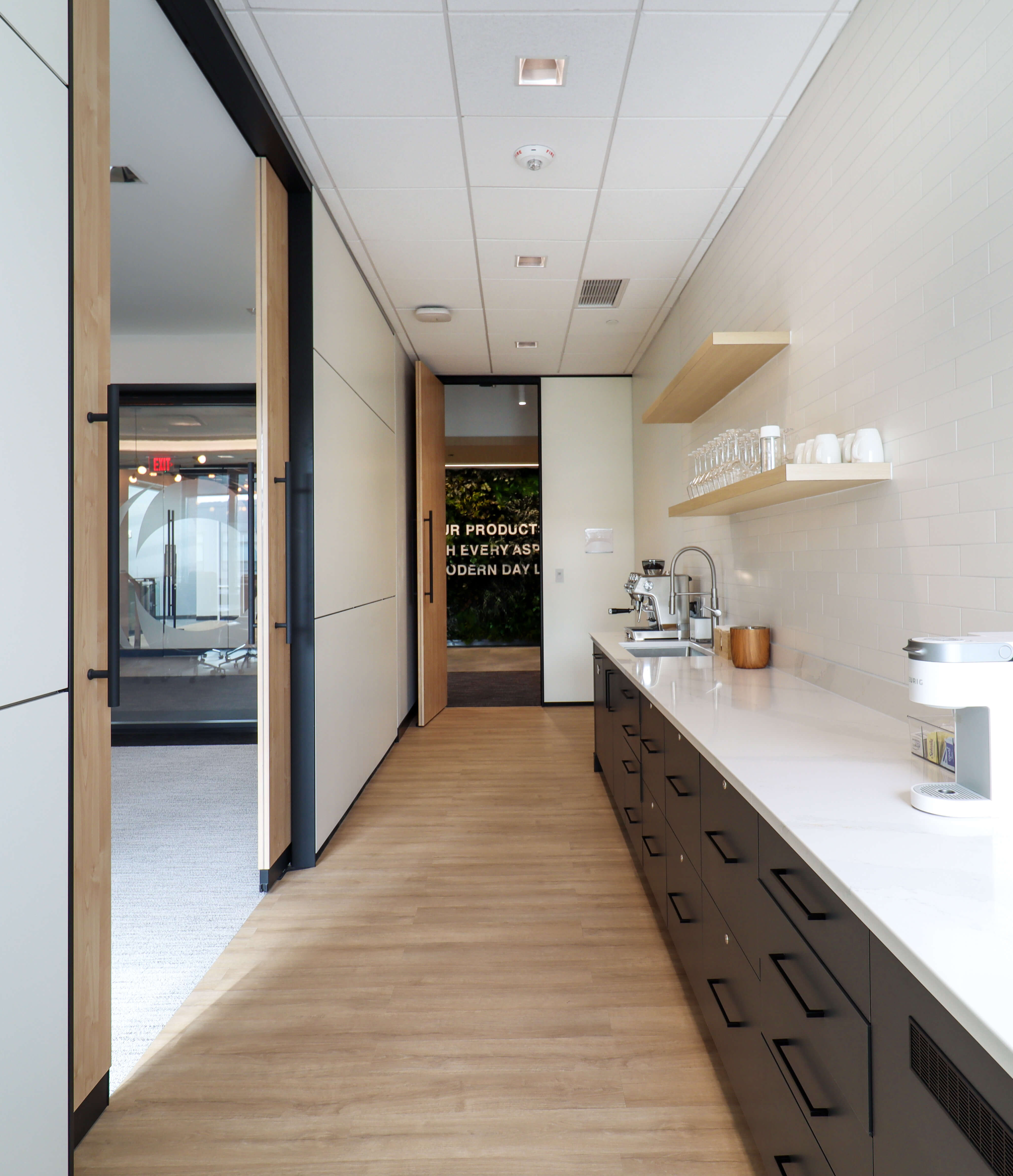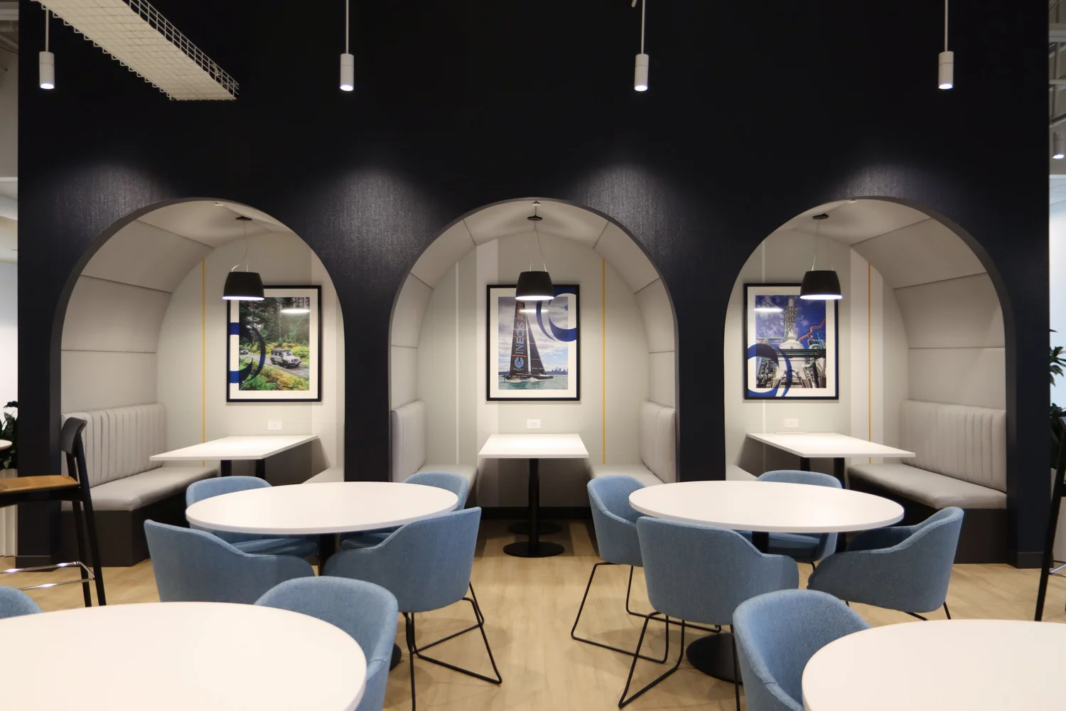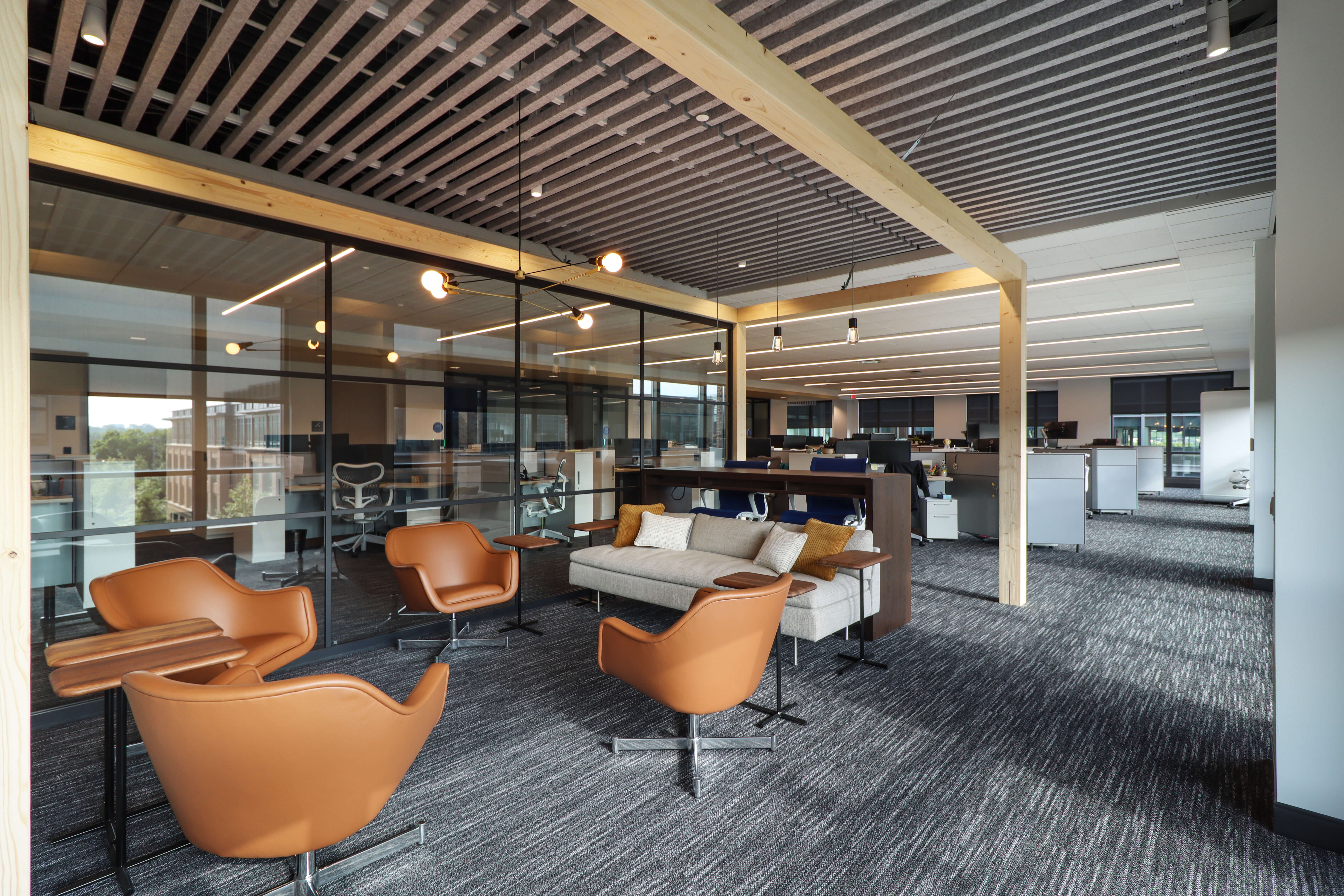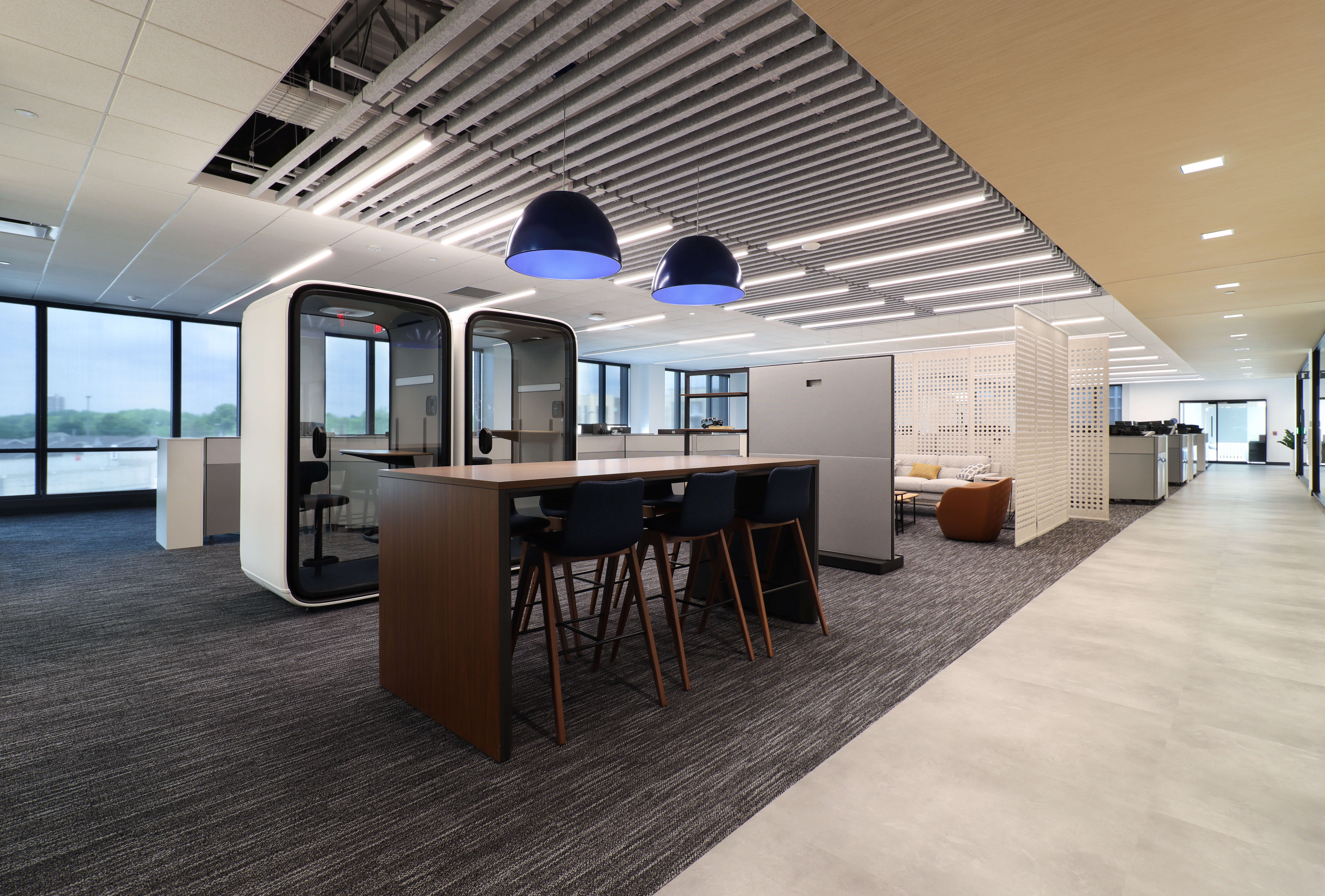 INEOS Enterprises, a global chemical company sought to consolidate several North American business headquarters into one central location in Grandview Heights, Ohio to enable collaboration and operational efficiency. Nationwide Realty Investors (NRI) secured INEOS Enterprises as a tenant on the fourth floor of their Grandview Yard building and hired Lehman Daman to complete the buildout, which features demountable partitions, a Greenmood living wall, café, boardroom with pantry, and a flexible mix of collaborative and private workspaces.