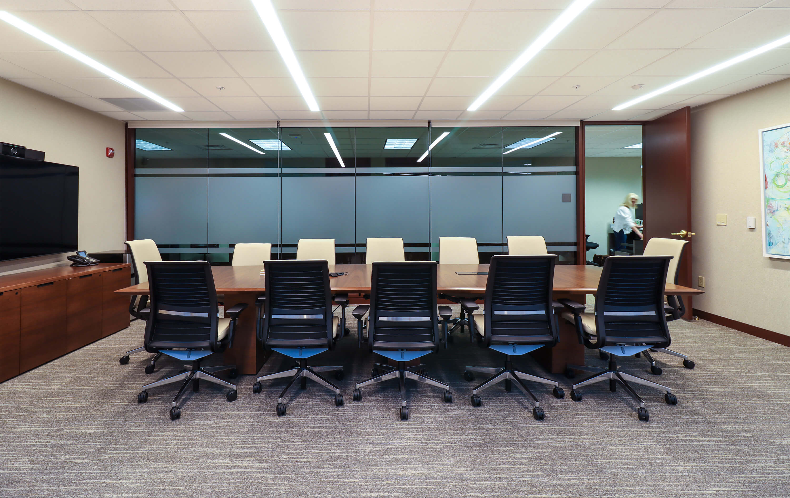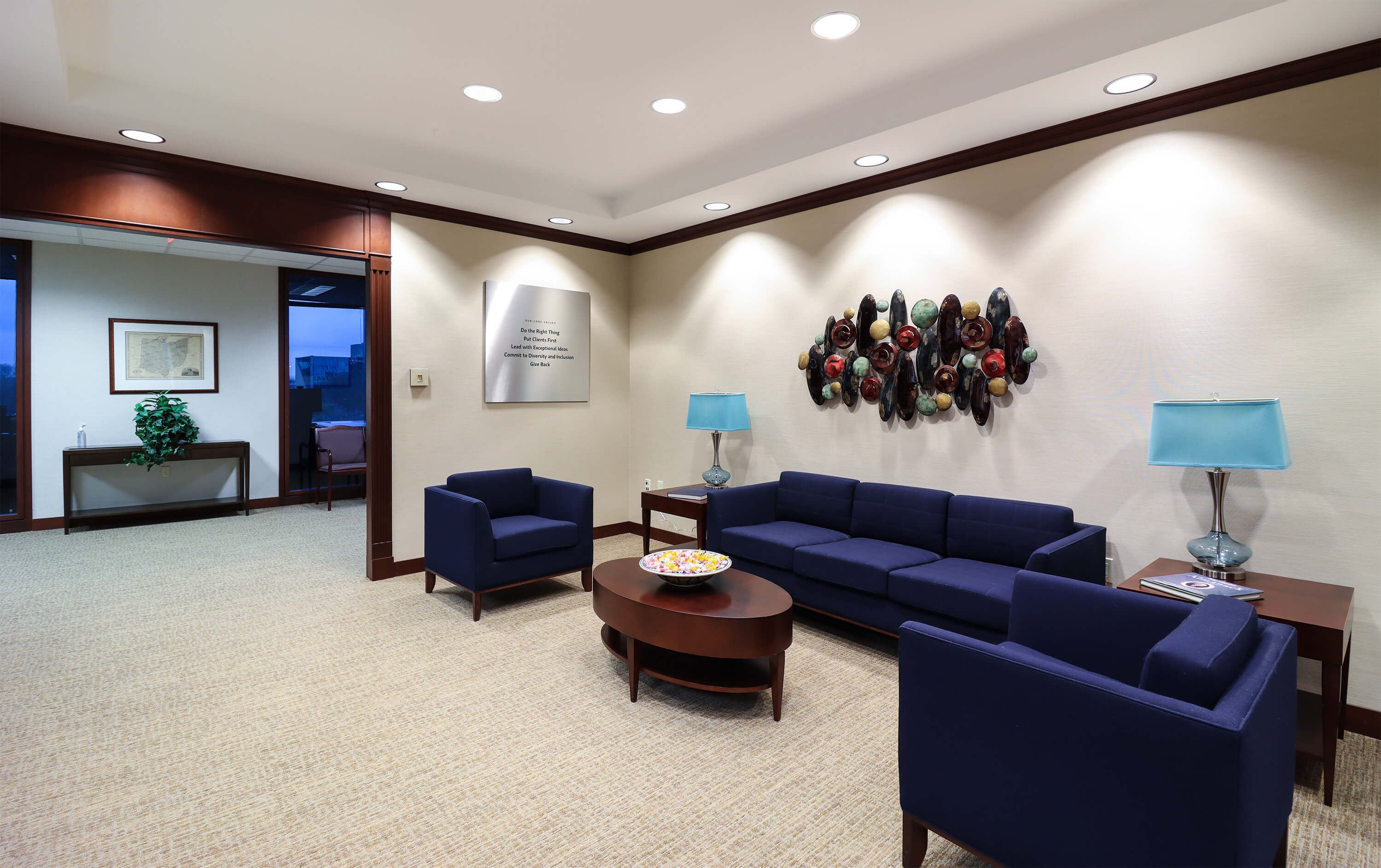 Lehman Daman built a demising wall at the outset of the project to keep construction activities separated. Lehman Daman followed all building rules and regulations and tied into the existing building and Morgan Stanley systems. Lehman Daman carefully matched finishes and materials to the existing office, giving them a seamless suite.