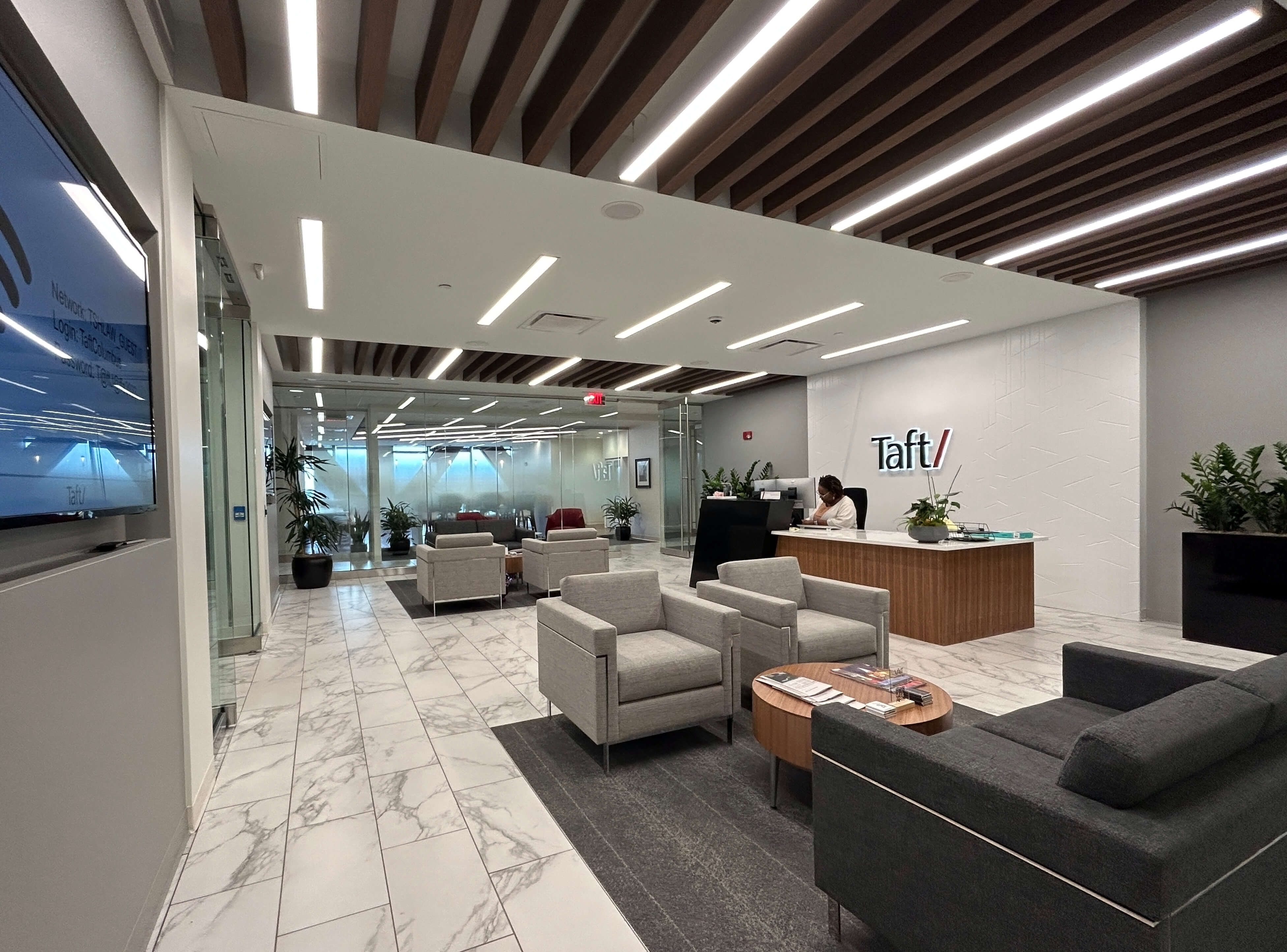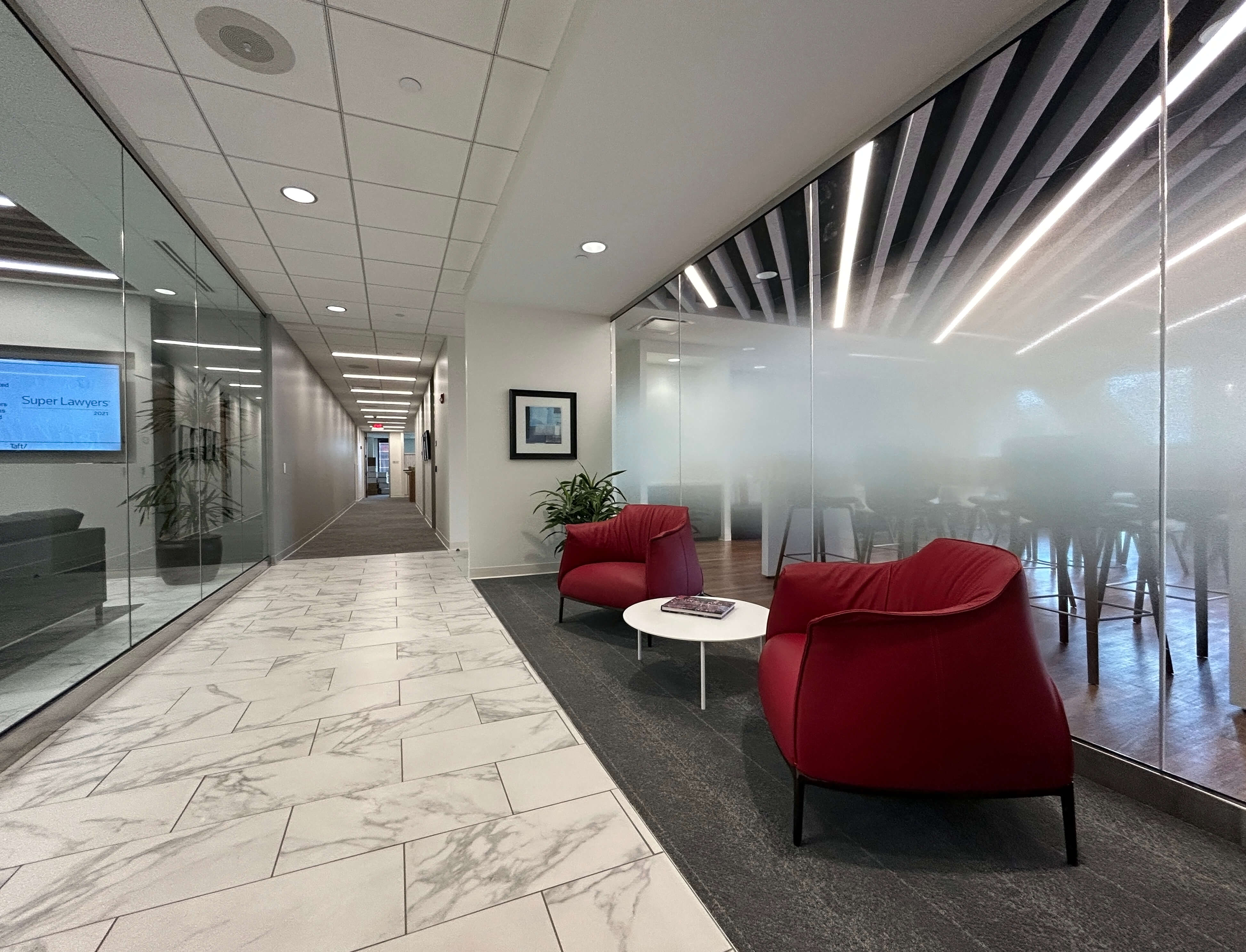 With their current lease ending, Taft Stettinius & Hollister LLP was looking for a bigger, client-ready office. Hines secured Taft as a tenant in the Huntington Center, a 37-story multi-tenant office building in downtown Columbus. Lehman Daman was hired to build out the 18th, 19th, and 22nd floors that Taft would occupy.